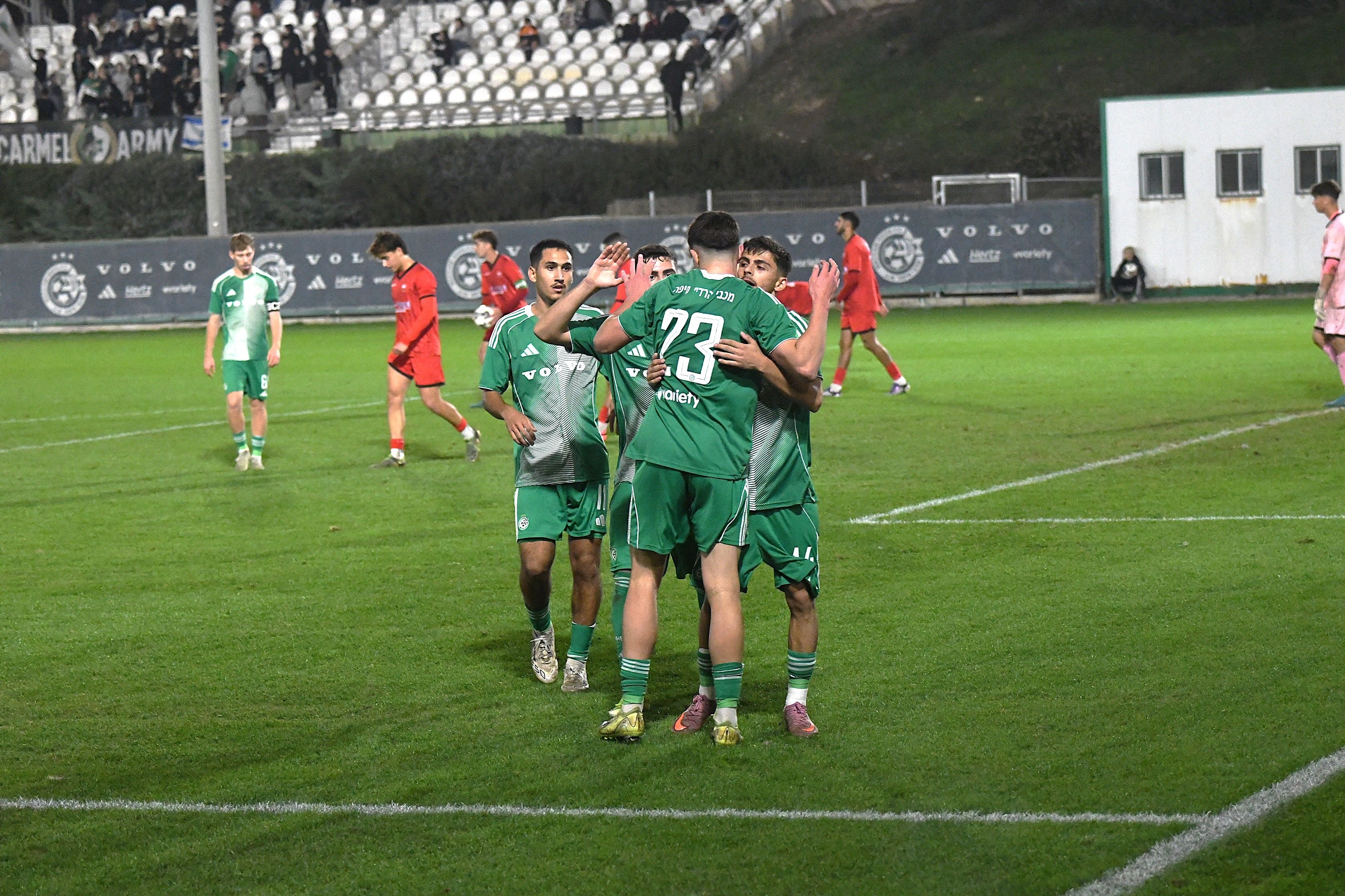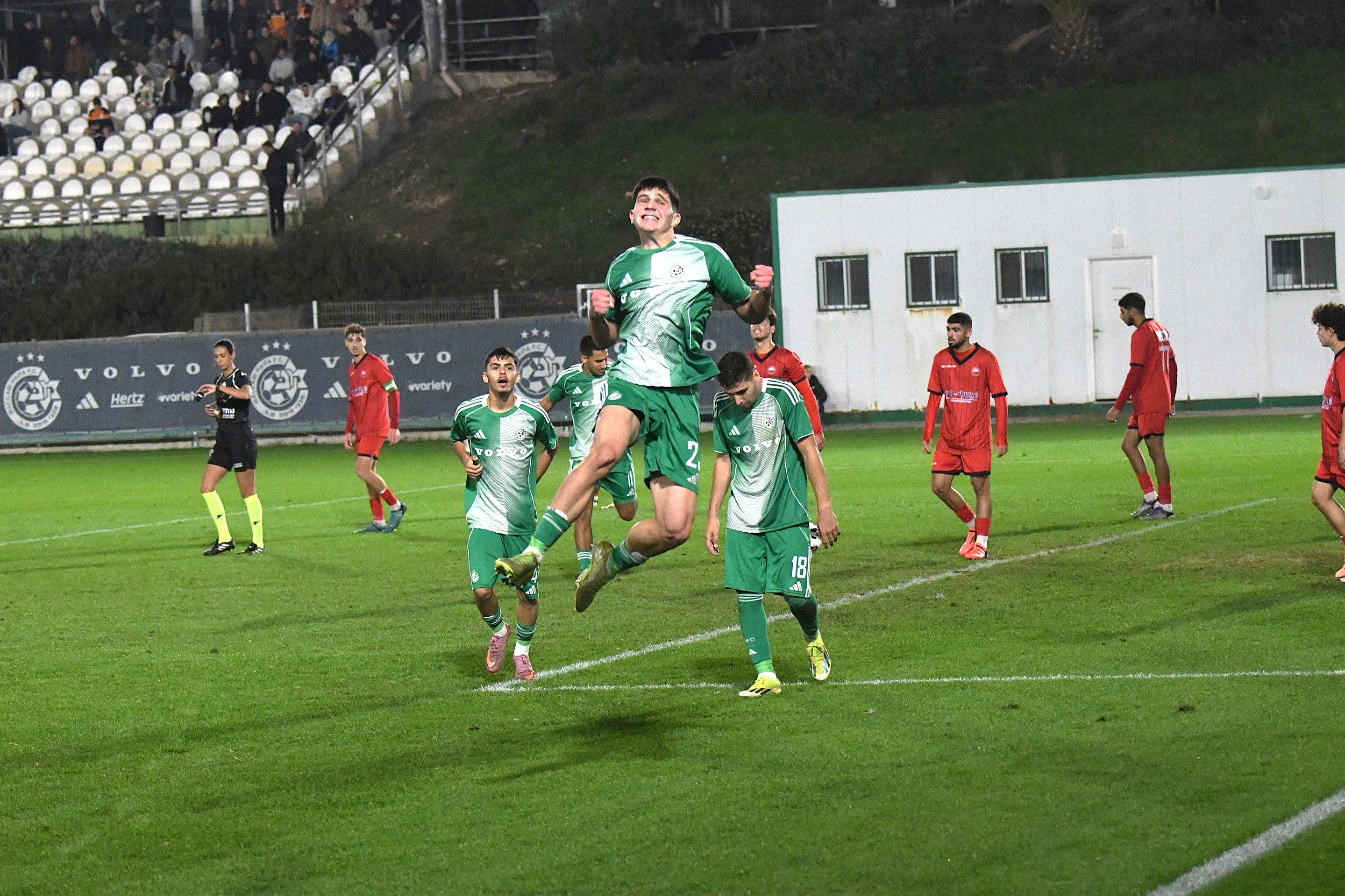 קבוצת הנוער הביסה הערב (רביעי) את הפועל רעננה 0:4 וחזרה למקום הראשון בטבלה לראשונה העונה. כבשו לירוקים: ליאם קרגולה (31'), אדם גרימברג (44'), נבות רטנר (55') וליאן לוסקי (65'). סיקור המשחק מטה. צילום: ג'ו הירש, מכבי חיפה