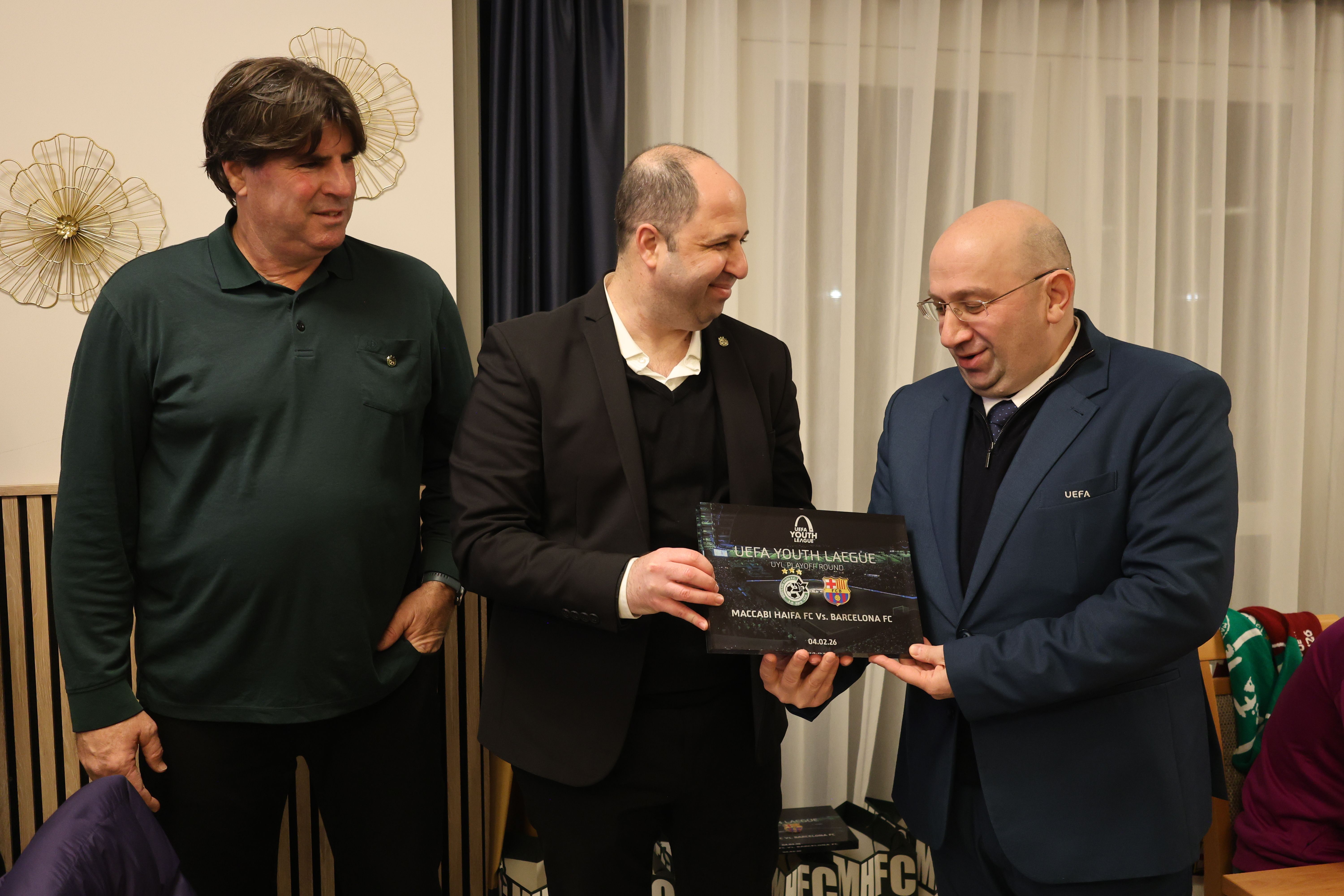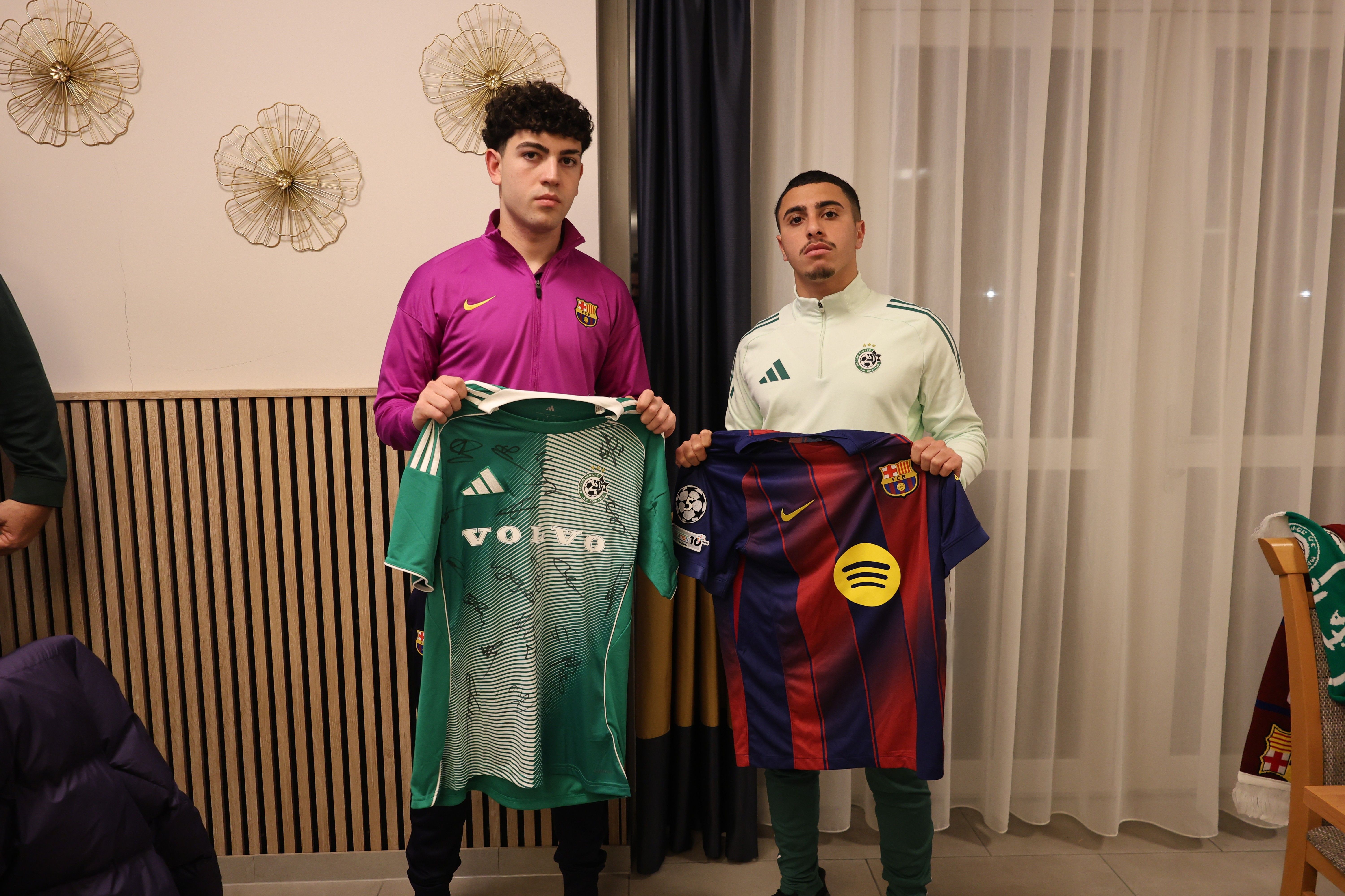 Durante la noche, representantes del club entregaron bufandas conjuntas de Maccabi Haifa y FC Barcelona a los jugadores de ambos equipos, camisetas firmadas por los futbolistas y estatuillas conmemorativas, como símbolo de respeto, deportividad y amistad entre los clubes.