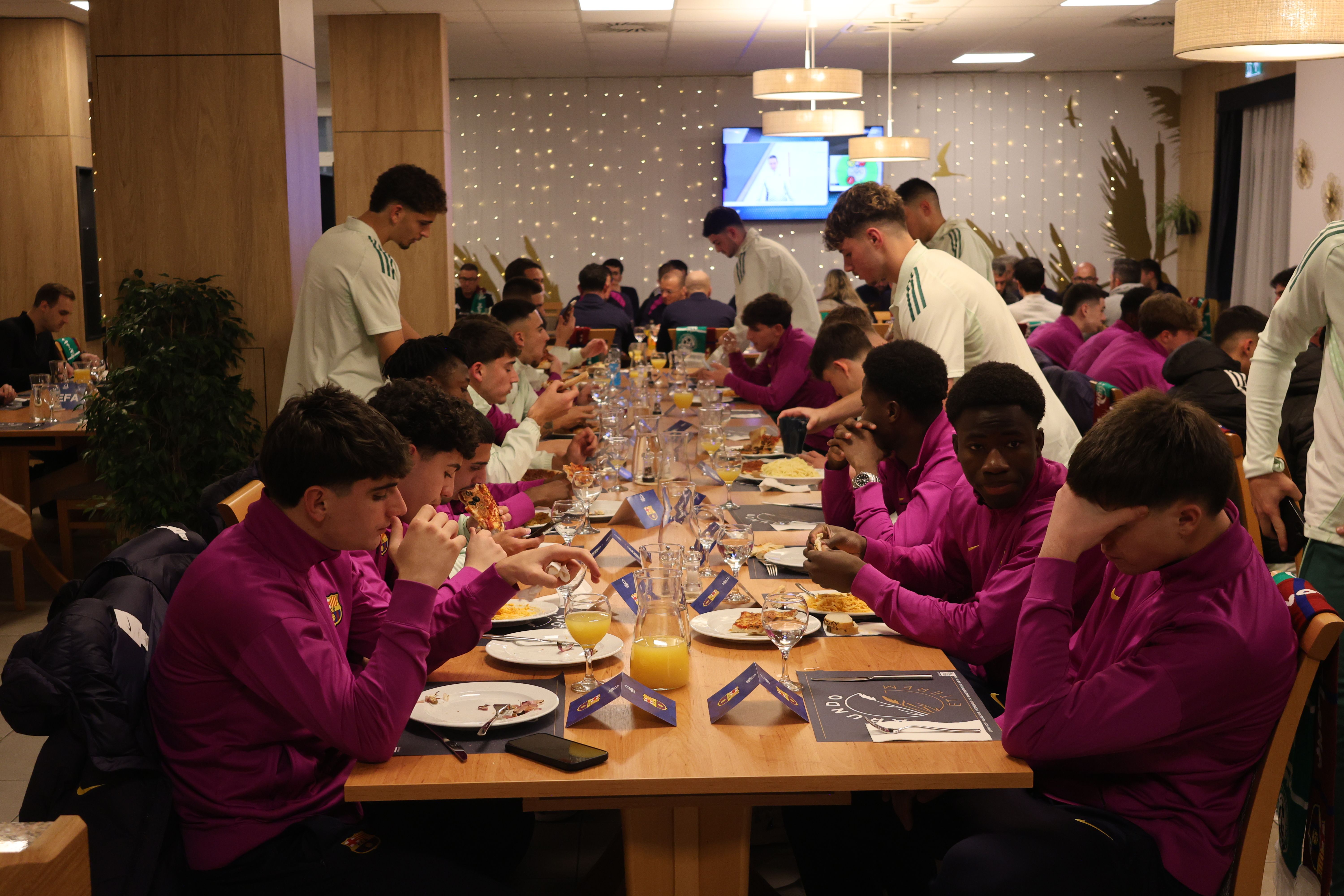 Tras el partido del miércoles ante el vigente campeón de uefa youth league, el FC Barcelona, y después de lograr la clasificación a los octavos de final, el Maccabi Haifa FC organizó una cena conjunta al término del encuentro de eliminatoria disputado en Hungría, con la presencia del equipo español, sus cuerpos técnicos y el equipo arbitral de Croacia y Hungría.
