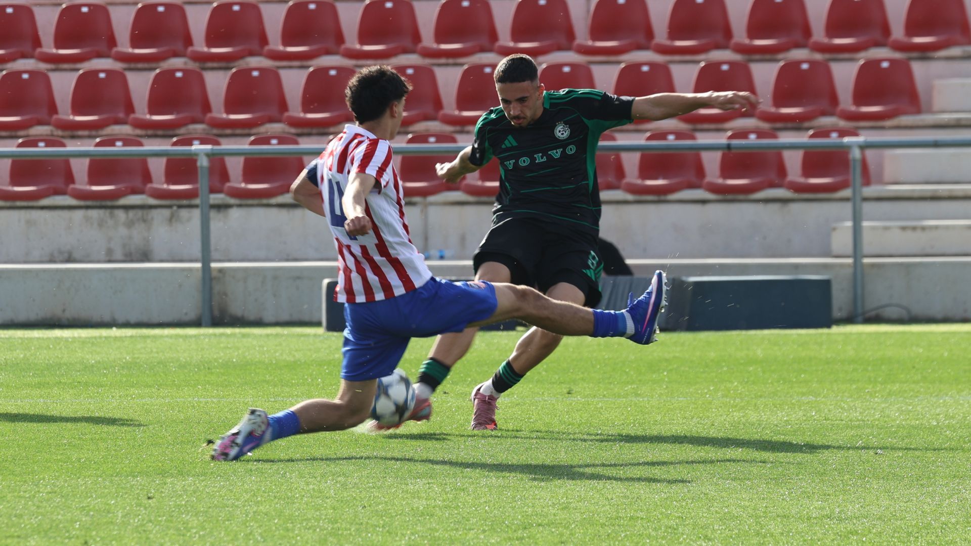 שמינית גמר ליגת האלופות לנוער: קבוצת הנוער סיימה היום (רביעי) את המסע האירופי הקסום עם הפסד 5:3 בפנדלים לאתלטיקו מדריד. הקולצ׳ונרוס כבשו שער מוקדם בדקה הרביעית של המחצית הראשונה, אך ינון פיינגזיכט השווה את התוצאה בדקה ה-71׳. צילום: מכבי חיפה