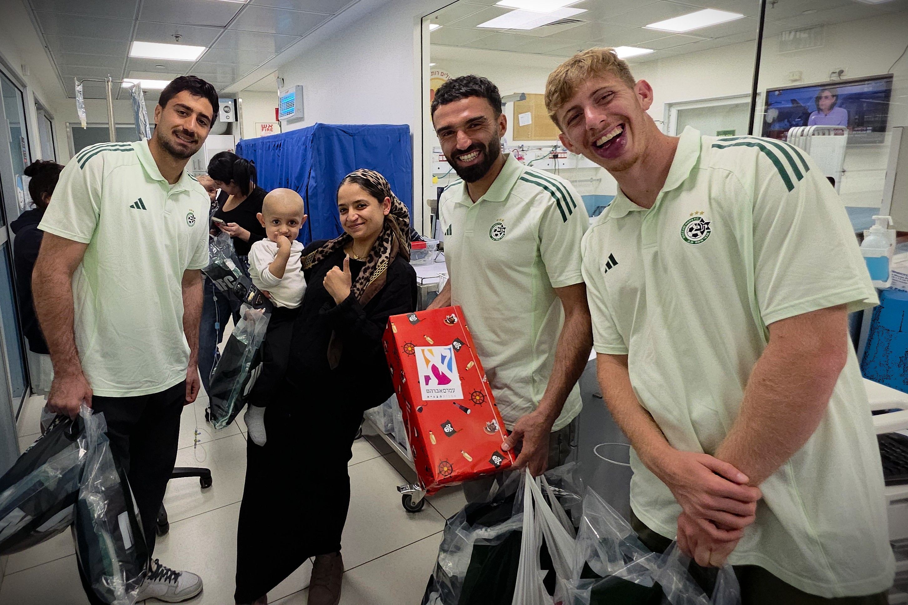 צפו: שחקני הקבוצה הגיעו היום אל בית החולים לילדים ברמב"ם, אשר עבר בגלל המלחמה לחניון התת-קרקעי. השחקנים, יחד עם נציגים והבעלים של "עמרם-אברהם אומנות הבנייה", חילקו לילדים מתנות, הצטלמו איתם והעלו על פניהם חיוך, בתוך שיגרת הטיפולים הלא נעימה. מאחלים לכולם רפואה שלמה