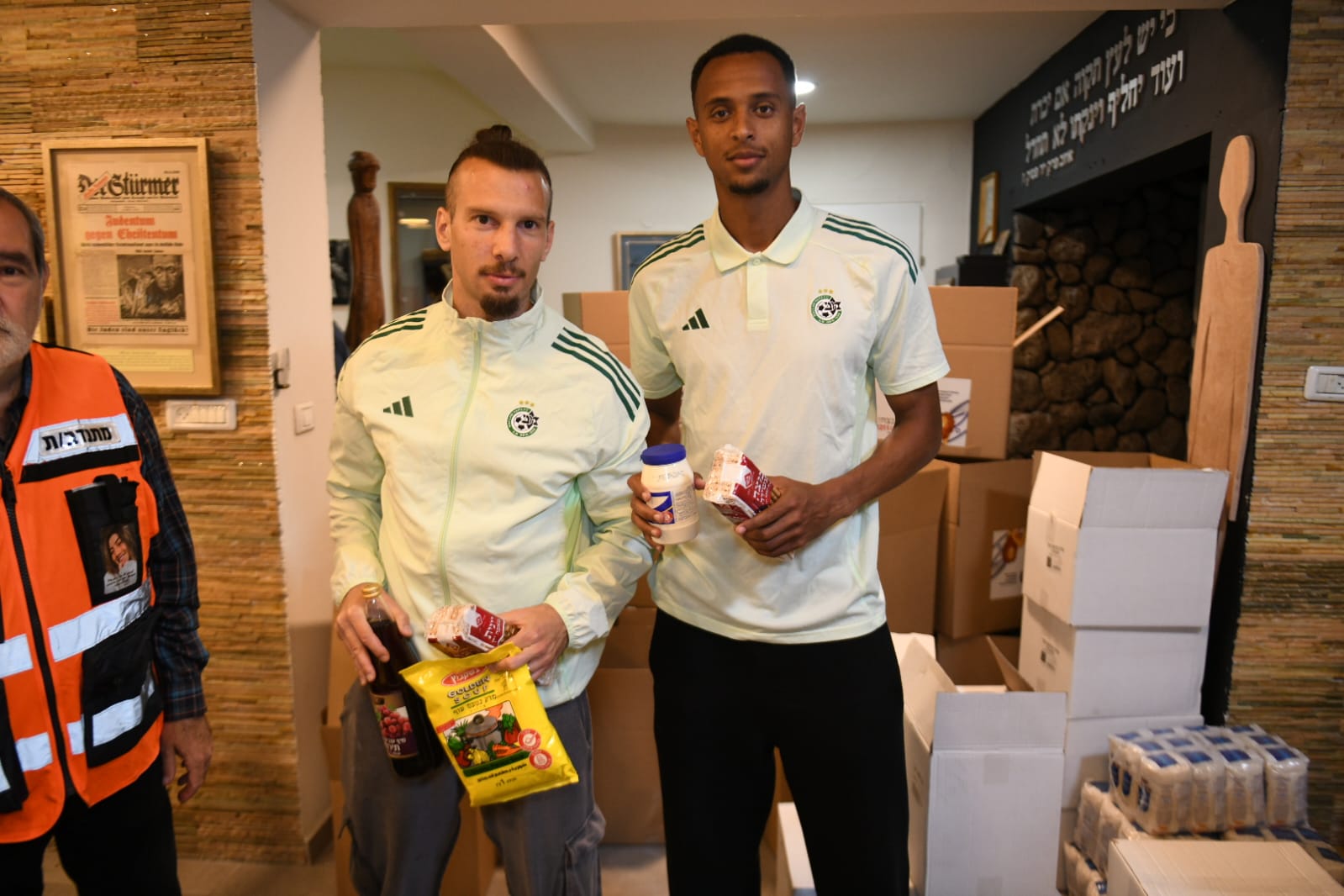 חדשותמתגייסים למען ניצולי השואהאורזים חבילות מזון יחד עם "יד עזר לחבר". שחקני הקבוצה, שון גולדברג, רועי פוקס, סוף פודגוראנו וזוהר זסנו, הגיעו היום למוזיאון השואה בעמותת "יד עזר לחבר" וארזו חבילות מזון למען קשישים ונזקקים מהצפון הרחוק. צילום: מכבי חיפה, ג'ו הירש24/03/2026 15:01PreviewPreviewPreviewPreviewPreviewPreviewעוד חדשות